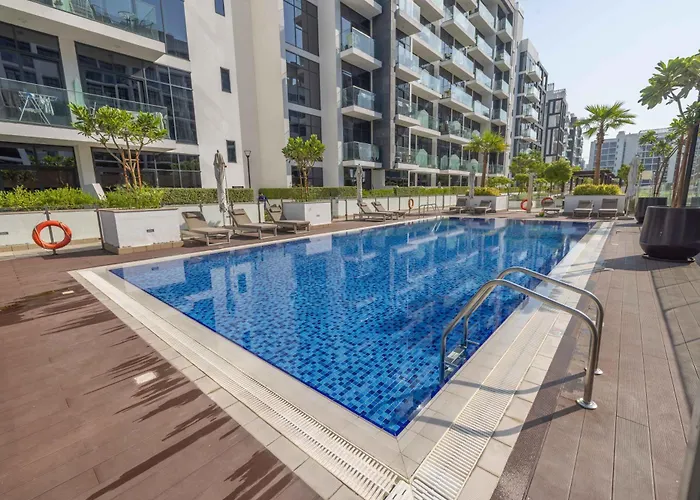 Among the self-catering amenities provided is an equipped kitchenette with an oven. The nearest airport is Dubai International airport, 5 km from Cozy Apartment In Azizi Riviera - 10 Min To Burj Khalifa in Dubai.